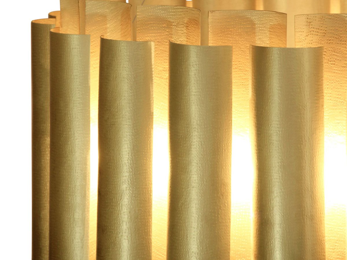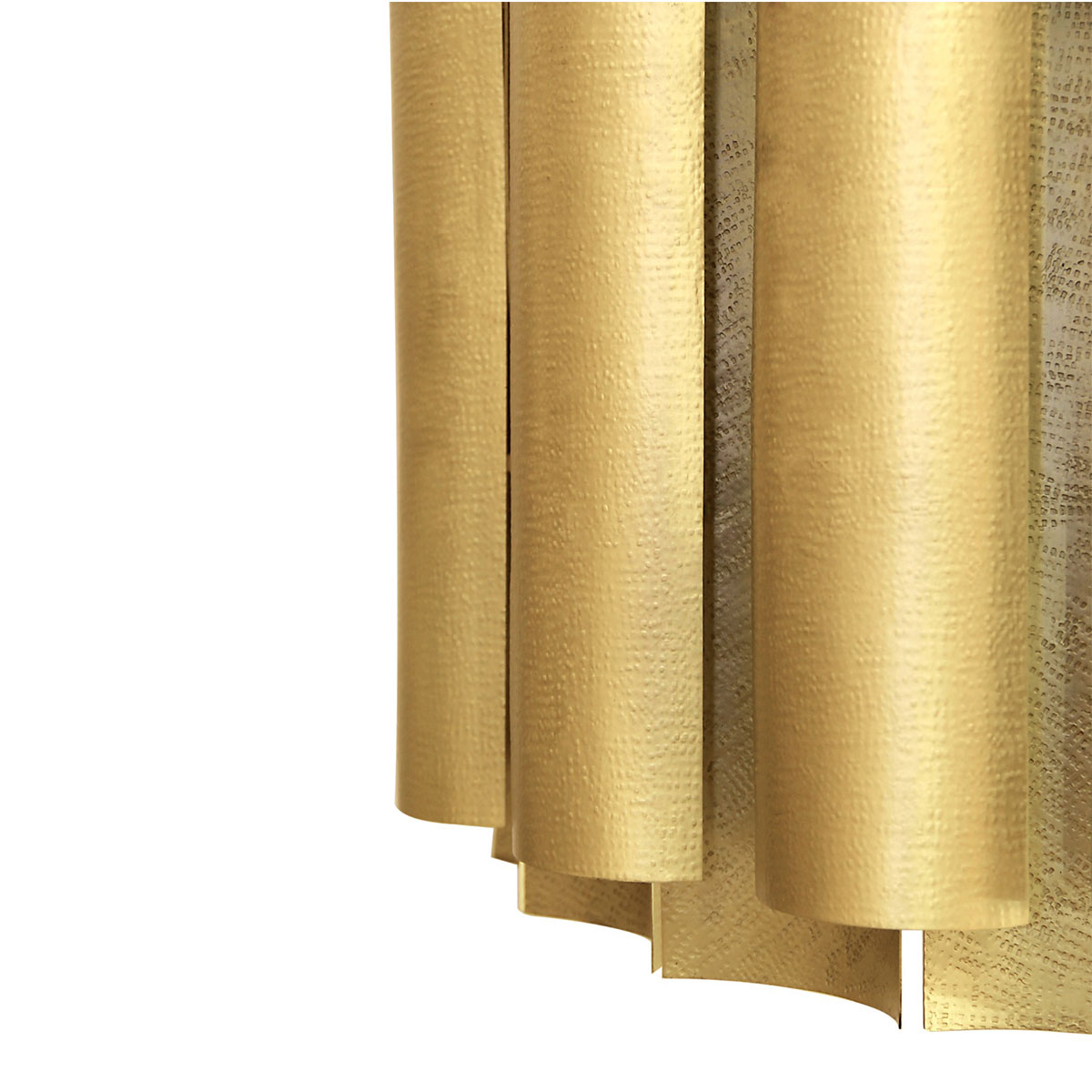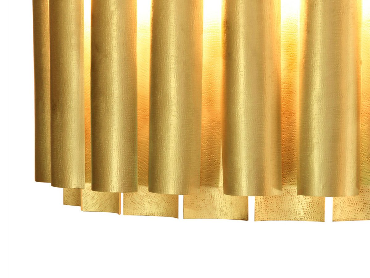Aurum is the Latin word for gold. This imposing metal also named a contemporary lighting piece made of matte hammered brass. With a unique design, Aurum III Suspension Lamp will bring comfort in the darkest nights with its warm yet sensitive light. This large chandelier is sure to impress.