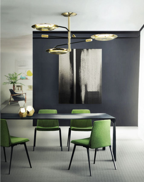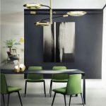 Hendrix Suspension Lamp ,with a shape that was inspired by a golden vinyl player, is a tribute the American rock guitarist, singer, and songwriter: Jimi Hendrix. This gold plated luminaire captures your attention letting you feel the acoustics of the bright Hendrix guitar and reminding us the high fidelity audio reproductions. The open, structured look of this ceiling light is a great choice for a stylish mid-century modern interior. The arms are manageable, allowing you to create personalized looks. Finished in gold plated and black matte with a brass structure, each arm of this contemporary chandelier takes 9 x G9 bulb ( included). With a customizable and flexible pole height, Hendrix fixture can be mounted on a sloped ceiling.