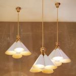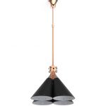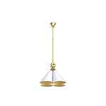 Madeleine Suspension Lamp, an industrial pendant lighting, is inspired by a flower bouquet. With four cone swiveling pinhole lights, this brass pendant lamp features a matte white interior and a gold powder paint inside finishing. This white pendant light is also possible to have with a flexible drawbar so that you can move it anytime. Madeleine is 15,5 inches tall, but it can be customizable on purchase, going up to 39,4 inches. Madeleine can complement many lofts, bars and restaurants, however this pendant light can go anywhere, adding an industrial style touch to whatever room you decide to hang it in.