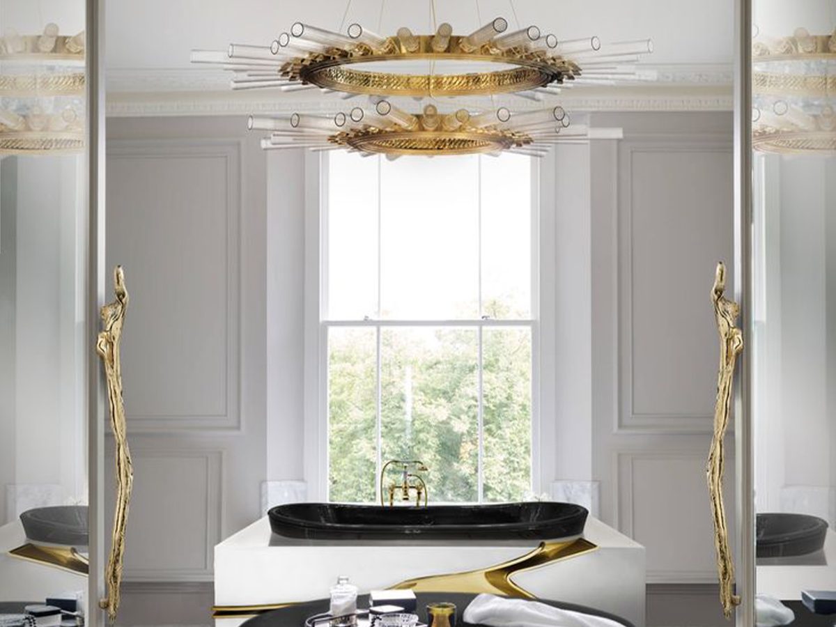 LuxxuThe Majestic II Suspension Lamp takes the form of two delicate lighting fixtures whose golden plated brass and crystal glass cylinders create an outstanding and exclusive design.