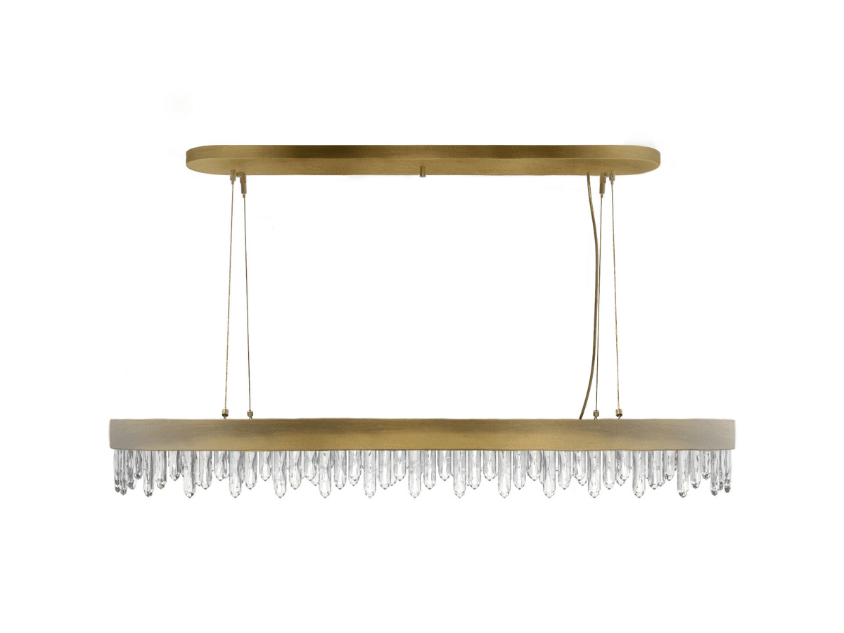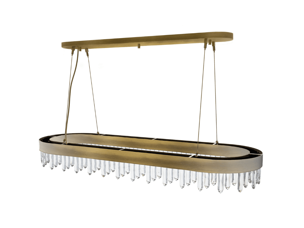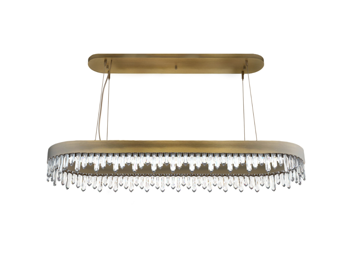 BrabbuNaicca Long Suspension Lamp, an oblong chandelier that pays homage to the legend of the crystal origins.